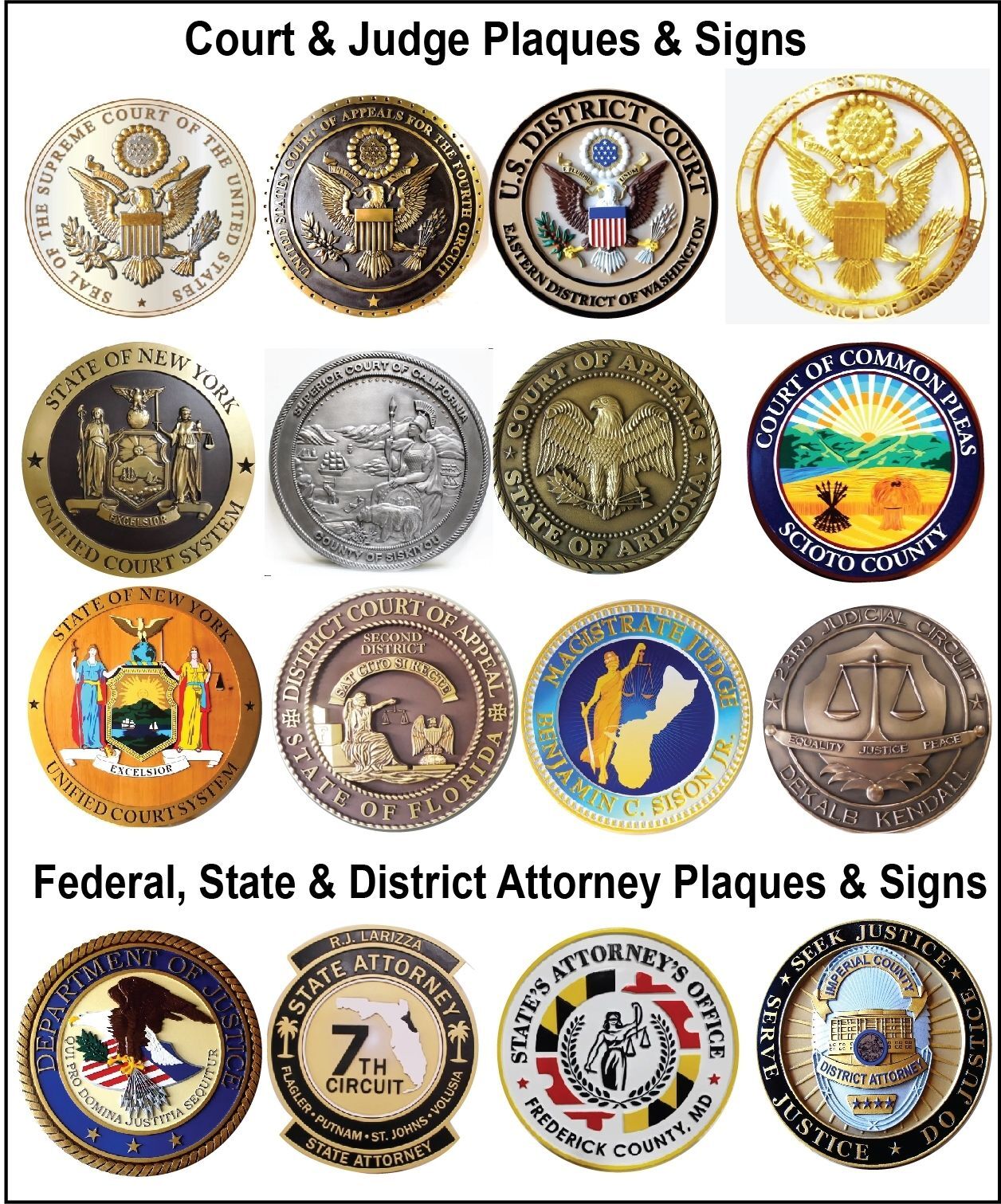 VIEW 200 EXAMPLES OF PHOTOS IN GALLERY 10B JUDGE, COURT AND FEDERAL/STATE/DISTRICT ATTORNEY SIGNS & PLAQUES (CLICK ON BLUE BUTTON BELOW)